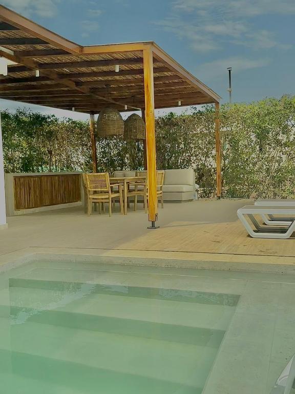 Puedes visitar lugares como Villas de Palmarito (5 km), Centro Recreacional Turipaná (7 km) cerca de Casa frente a la playa.