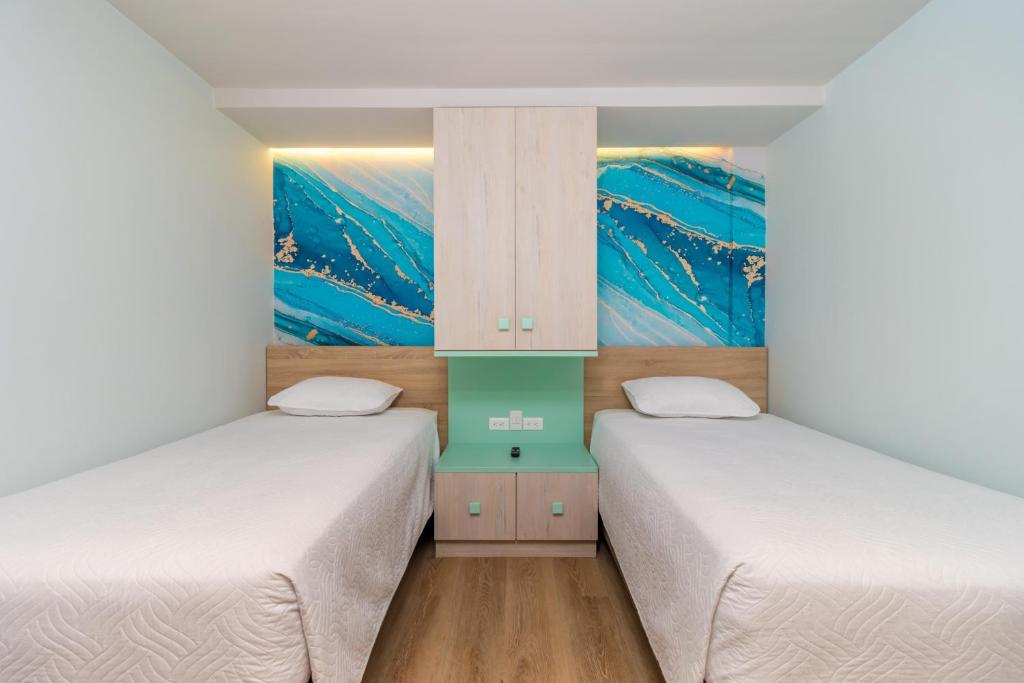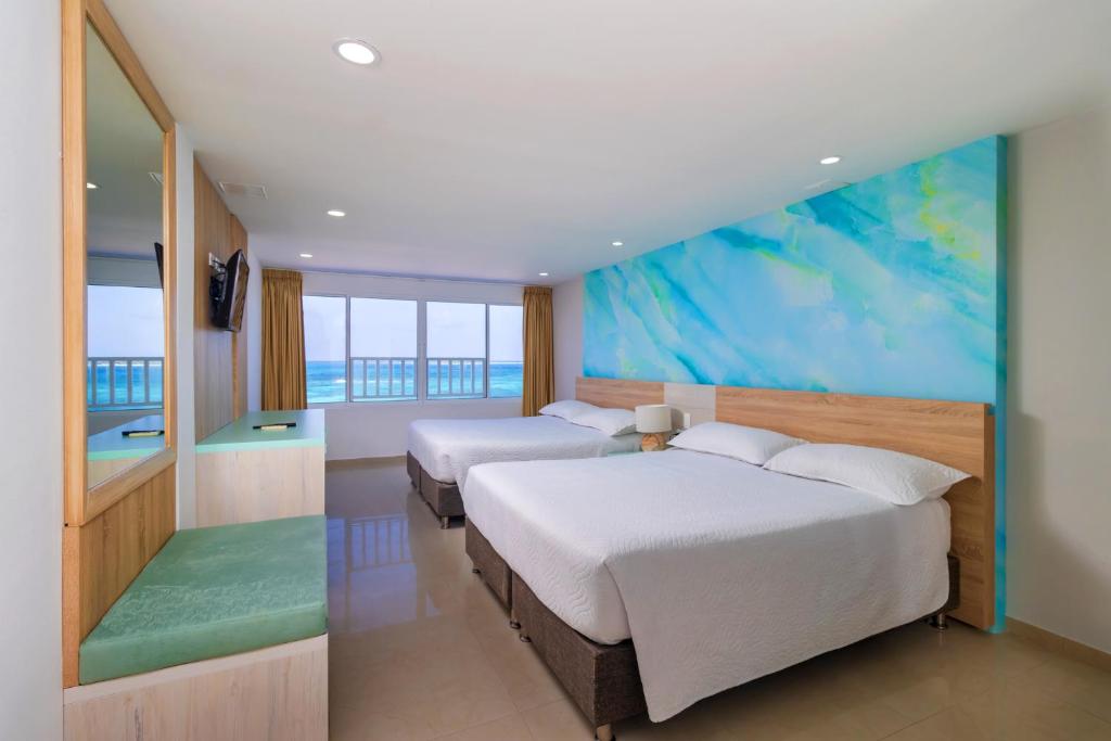El hotel dispone de los siguientes tipos de habitaciones: Habitación Cuádruple Estándar, Habitación Cuádruple Superior, Habitación Cuádruple con vistas al mar, Habitación Doble Estándar.