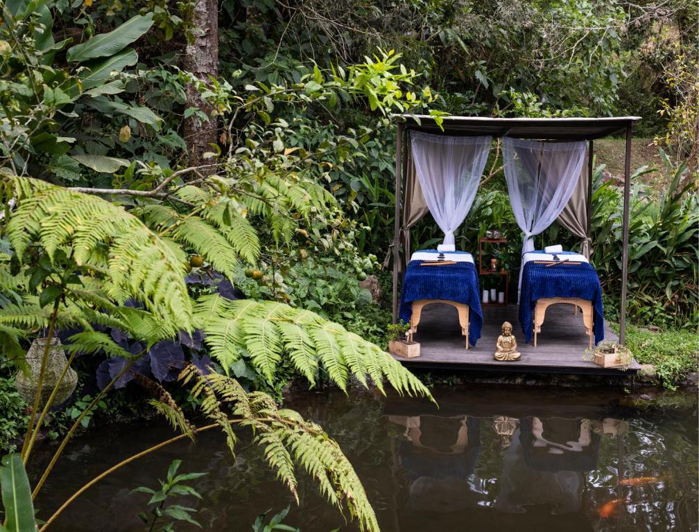 Guests will have a special experience as this tent offers a pool with a view, a hot tub and a spa bath. The tent provides a private entrance, a tea and coffee maker, a terrace with garden views as well as a private bathroom featuring a shower.