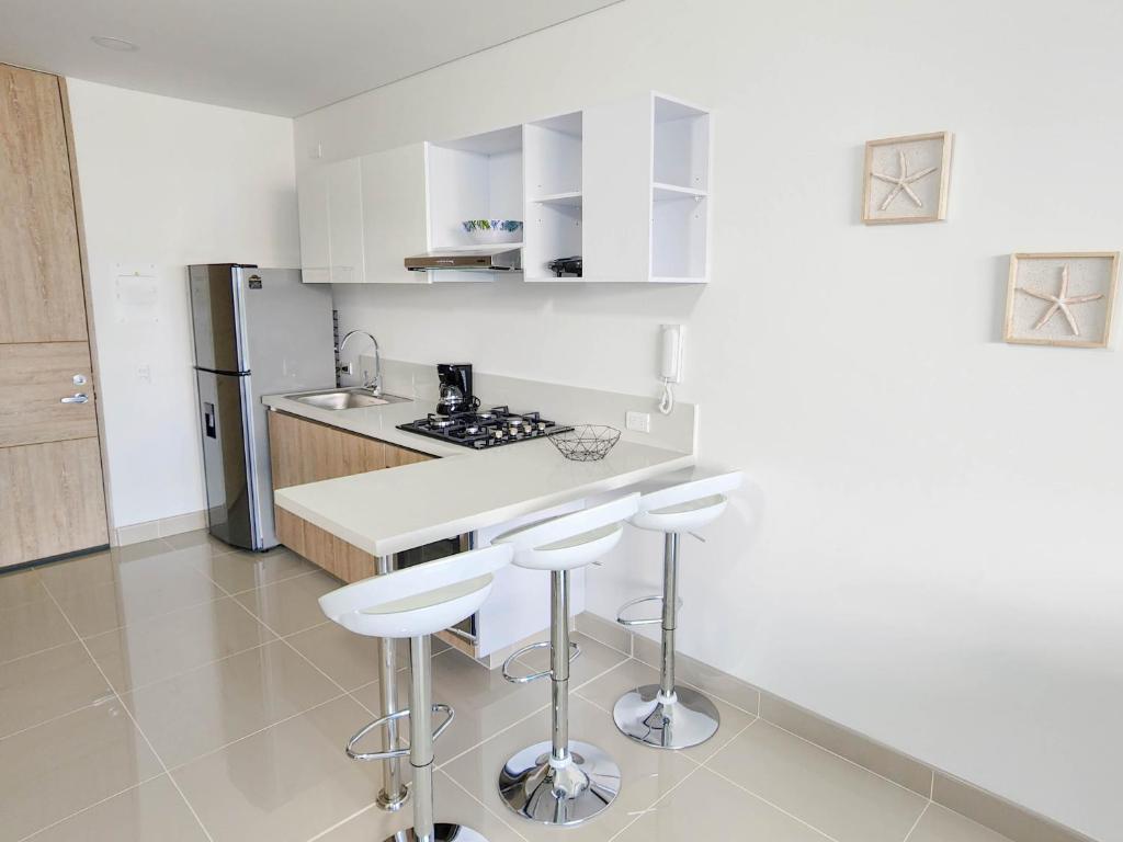 Apartamentos en Reserva del Mar - By BEDVIAJES cuenta con instalaciones como cocina o acceso a opciones de comida en el establecimiento.