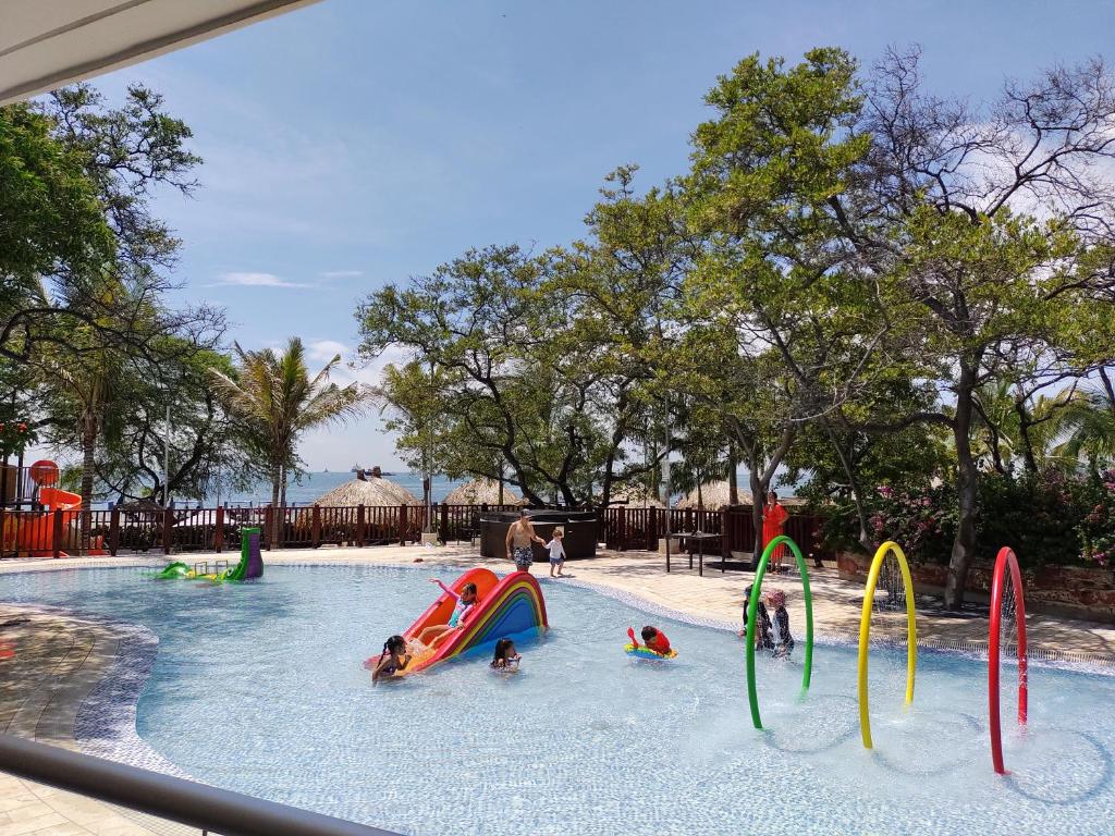Puedes viajar con tu familia y hospedarte cómodamente en Confortable apto 3H AC WIFI en Club de playa al Mar, Sector Zazue, Playa Pozos Colorados.