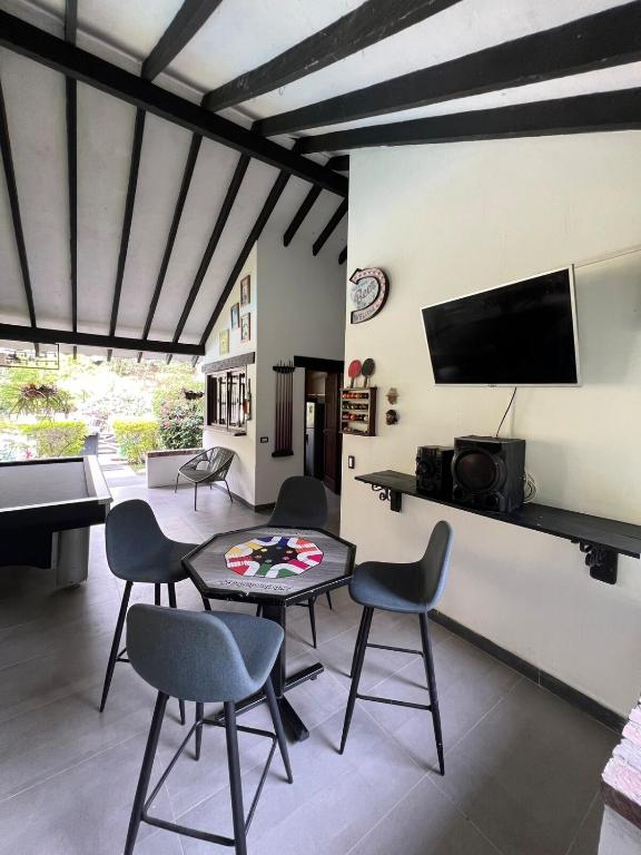 Los huéspedes pueden disfrutar de bebidas en el bar del establecimiento en Finca en Sopetran.