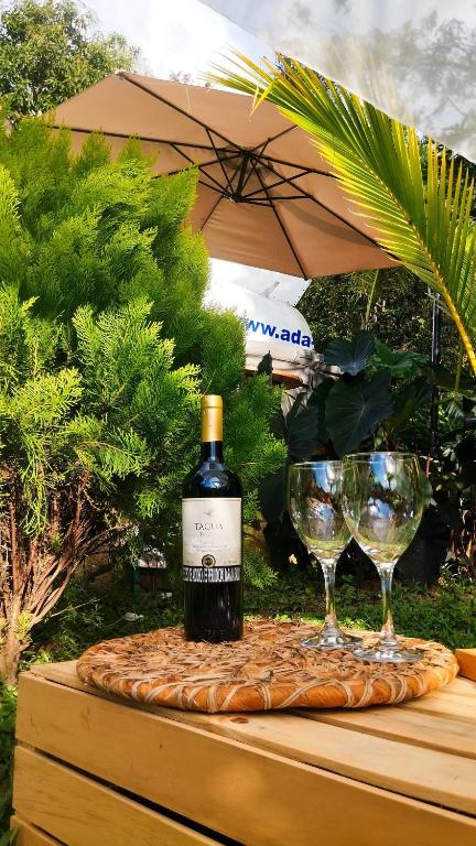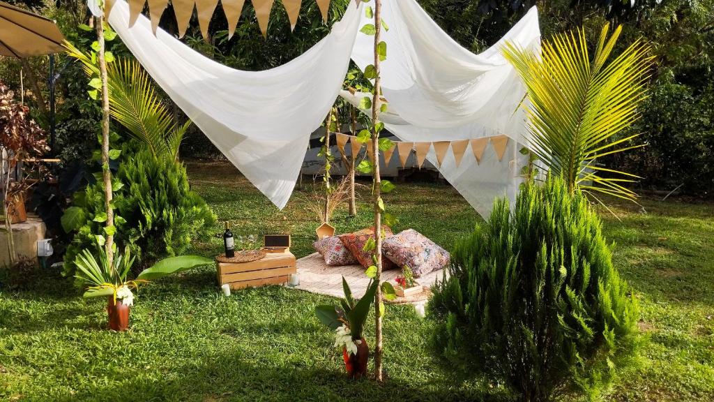 This double room's special features are the hot tub and the spa bath. Guests will find a refrigerator, kitchenware and a tea and coffee maker in the kitchen. The double room also provides guests with a barbecue. This air-conditioned double room features a seating area, an outdoor dining area, garden views and a private bathroom. The unit offers 1 bed.