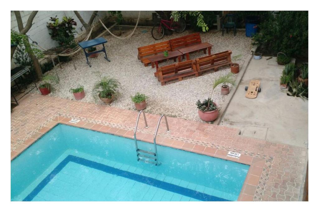 Puedes bañarte en la piscina de La Tortuga Hostel.