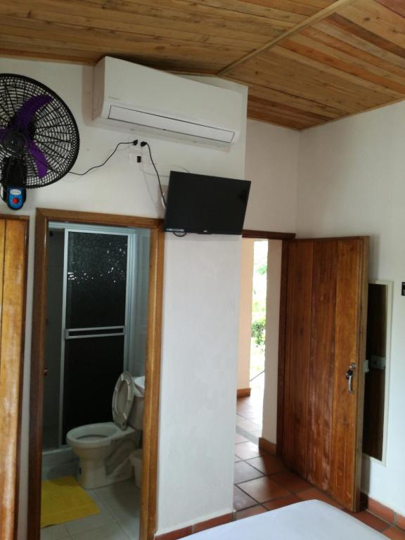Esta habitación doble tiene aire acondicionado, TV de pantalla plana con canales por cable, baño privado y zona de comedor al aire libre. Hay 1 cama.