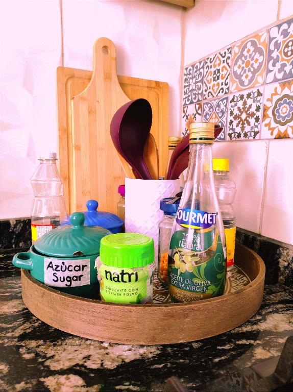 Apartamento en el centro histórico de Tunja con chimenea cuenta con instalaciones como cocina o acceso a opciones de comida en el establecimiento.