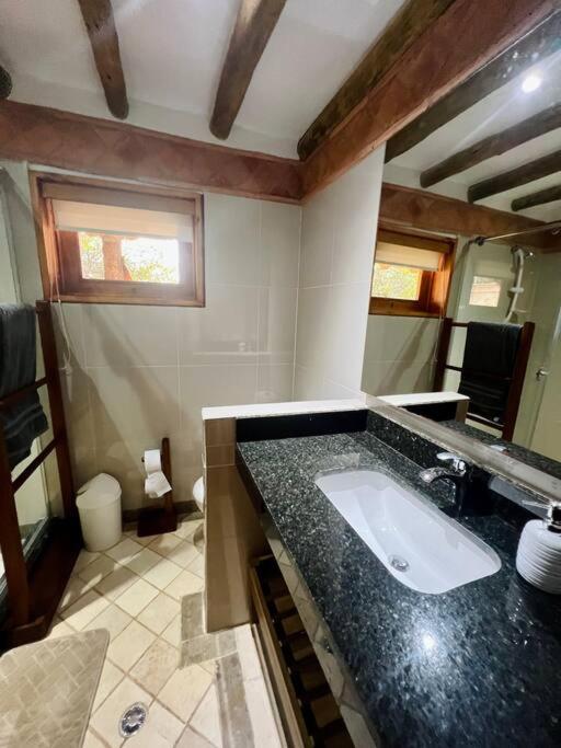 Sí, Hermosa cabaña campestre con piscina y lago acepta mascotas durante tu estancia.