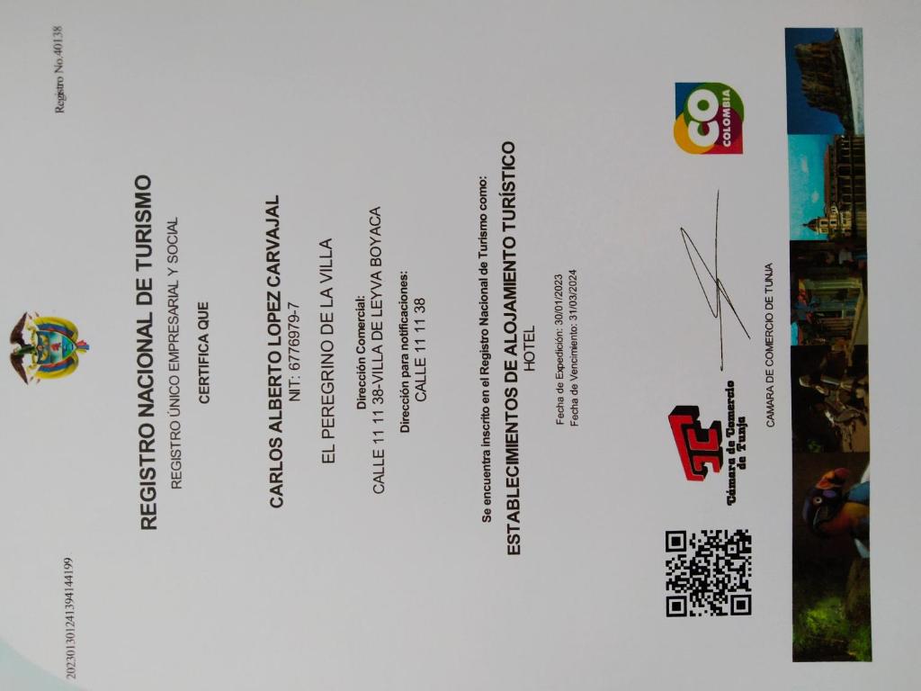 Alrededor de Hotel El Peregrino De La Villa hay puntos turísticos como Plaza de Armas Villa de Leyva (300 m), Parque Principal (350 m), Parque Antonio Nariño (400 m).